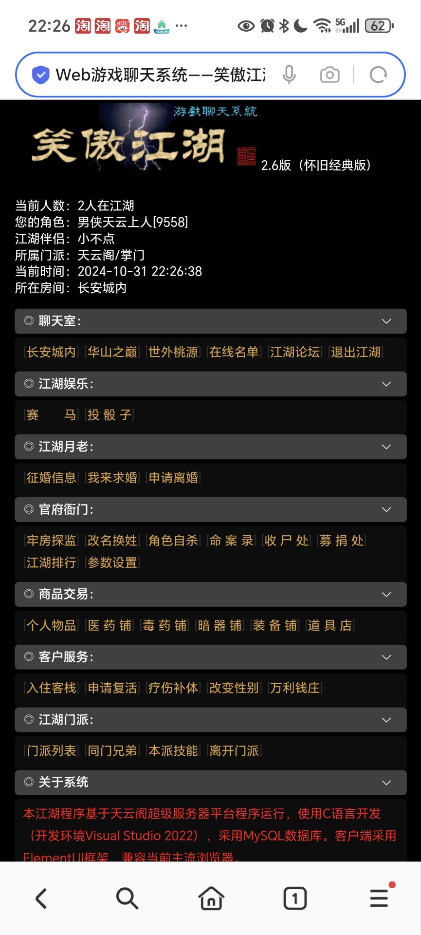 [RSA] Private = 你的RSA私鑰 Public = 10001 Module = 你的RSA模數(shù) [Setup] ;數(shù)據(jù)庫連接 MySQL = {"Host":"127.0.0.1","Port":3306,"User":"root","Passwd":"你的密碼"} ;游戲數(shù)據(jù)庫 gameDB = xajh2(你自己的數(shù)據(jù)庫名) ;賬號驗證數(shù)據(jù)庫 AuthDB = tt3000db(你自己的數(shù)據(jù)庫名) MaxAnte = 1000 RoomCount = 3 [Room1] Name = 長安城內(nèi) MaxUser = 2 RandomMin = 710 RandomMax = 10000 [Room2] Name = 華山之巔 MaxUser = 10 RandomMin = 710 RandomMax = 10000 [Room3] Name = 世外桃源 MaxUser = 1 RandomMin = 710 RandomMax = 10000